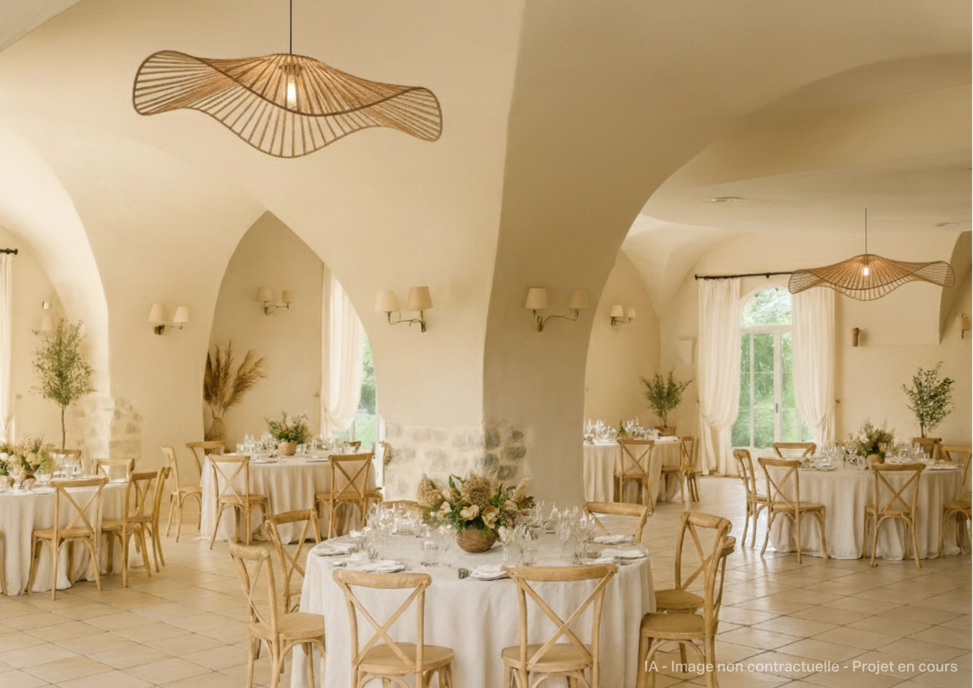 Le Mas, quant à lui, offre une atmosphère plus intime, parfaite pour un dîner de veille en petit comité ou un brunch champêtre.